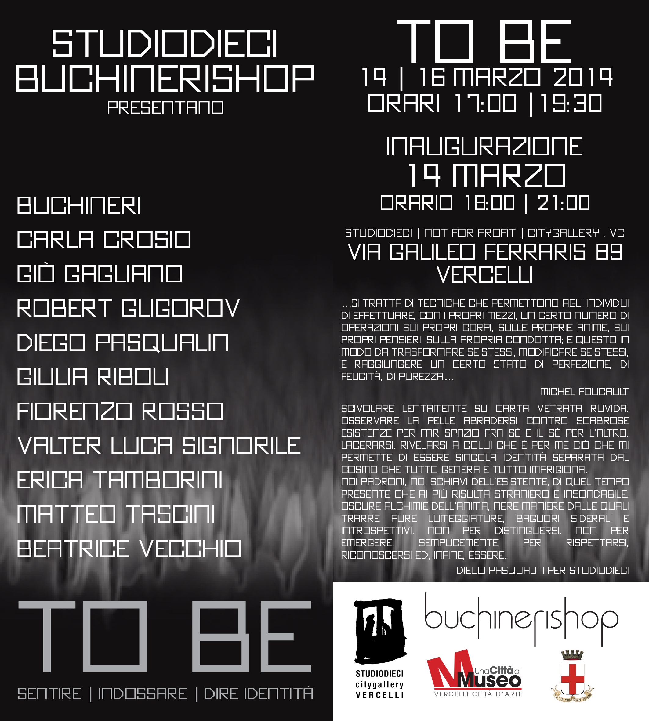 Scivolare lentamente su carta vetrata ruvida. Osservare la pelle abradersi contro scabrose esistenze per far spazio fra sé e il Sé per l’Altro. Lacerarsi. Rivelarsi a colui che è per me ciò che mi permette di essere singola identità separata dal cosmo che tutto genera e tutto imprigiona. Noi Padroni, noi schiavi dell’esistente, di quel tempo presente che ai più risulta straniero e insondabile. Oscure alchimie dell’anima, nere maniere dalle quali trarre pure lumeggiature, bagliori siderali e introspettivi. Non per distinguersi. Non per emergere. Semplicemente per rispettarsi, riconoscersi ed, infine, ESSERE.