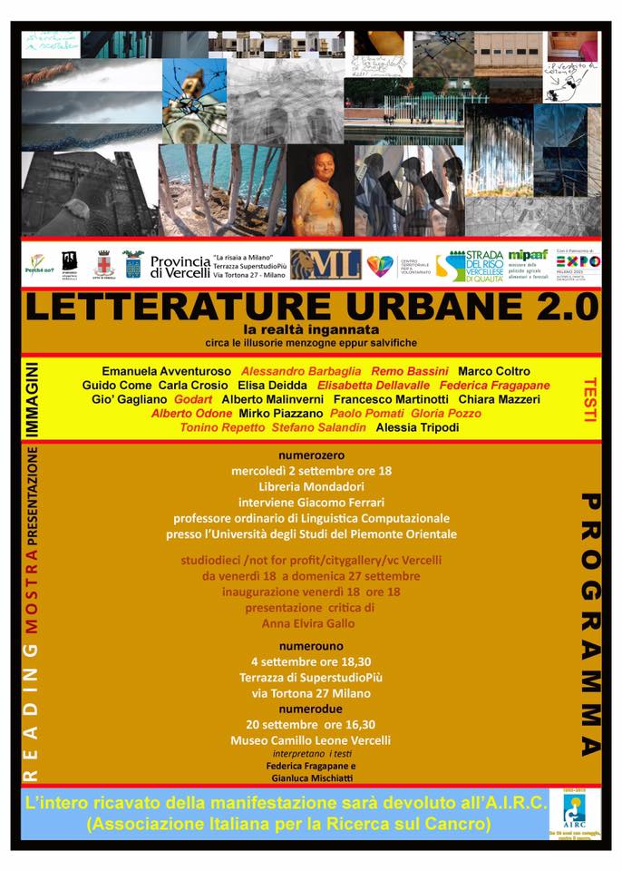 LETTERATURE URBANE 2.0 è stato Ideata dell’associazione di volontariato “PERCHE’ NO?” e organizzata in collaborazione con Studio Dieci, l’Associazione “Strada del riso vercellese di qualità” e il Museo Camillo Leone di Vercelli.