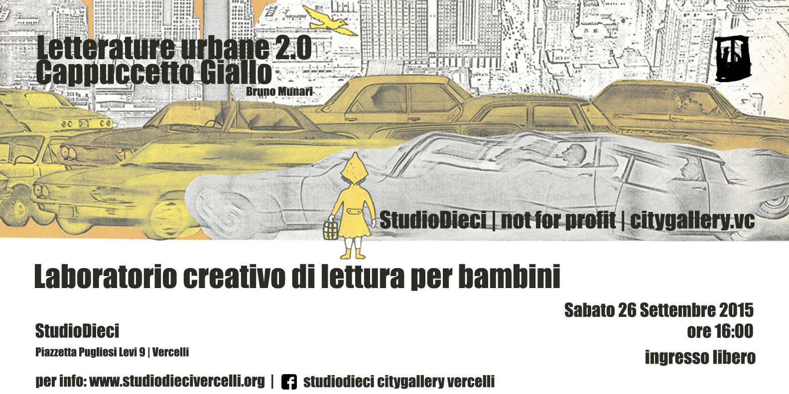 Avvalendosi della collaborazione tra Diego PASQUALIN, nuovo direttore artistico, e Lara GOBBI, coordinatrice del progetto nazionale NATI PER LEGGERE Valsesia-Valsessera, il centro culturale vercellese offrirà al pubblico presente la lettura di CAPPUCCETTO GIALLO, fiaba di Bruno MUNARI scritta nel 1972 dove l’autore ha sostituito all’ambiente boschivo, le insidie cittadine; a seguire i bambini potranno intervenire con la loro fantasia sullo skyline urbano, che gli studenti del Liceo Artistico di Varallo hanno realizzato appositamente per loro.