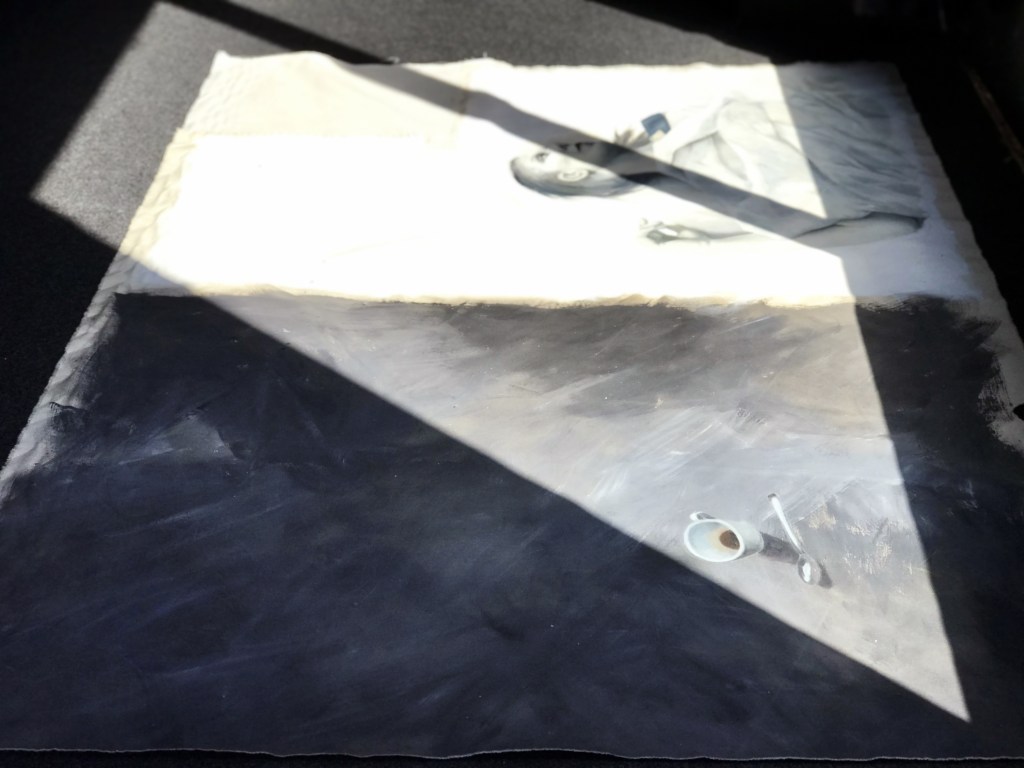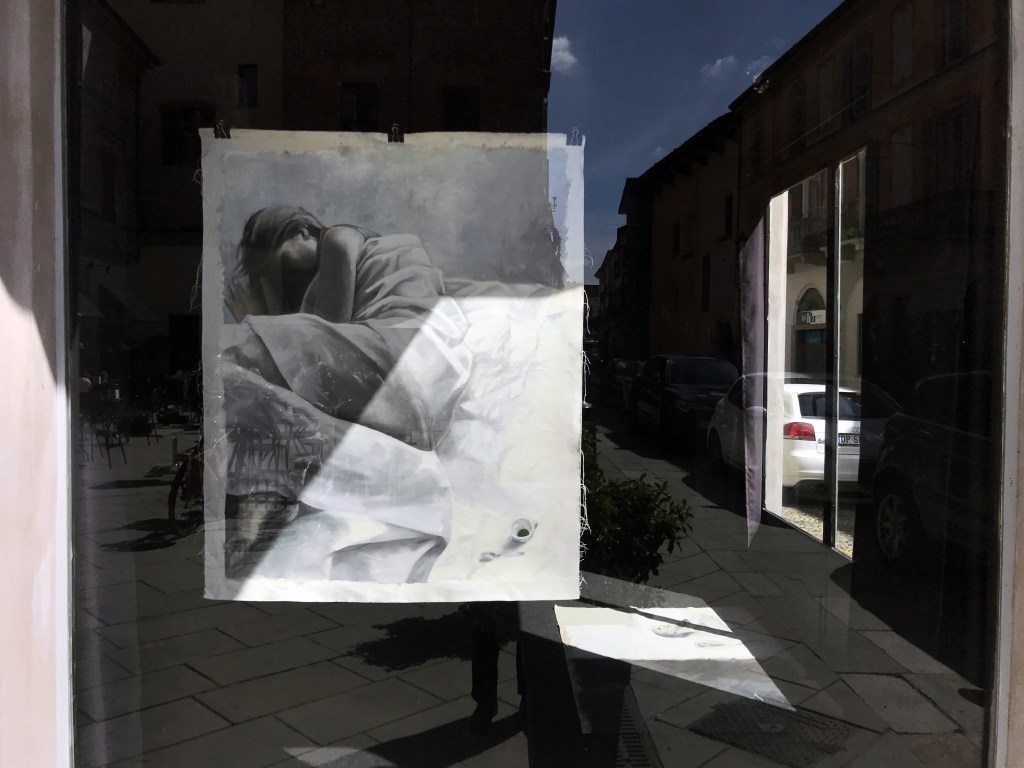 Approdo nelle vetrine centrali e le opere esposte sono più dolci. I colori si sono schiariti e i riflessi dei vetri si mescolano ai bagliori luminosi che incorniciano le donne ritratte, tra panneggi di lenzuoli che, forse, raccontano le pieghe di notti voluttuose, o di quegli ultimi momenti di rilassamento in cui cerco il coraggio di alzarmi ancora. Per fortuna c’è il caffè. C’è il totale abbandono ai pensieri e a me stesso. Cerco di entrare in sintonia con i personaggi di questi quadri, ma sono, a loro volta, troppo assorte nella propria intimità che ogni tentativo cade perché la loro è una presenza-assenza. Sono qui, ma altrove. Qui per me, ma altrove col pensiero. Nei loro sguardi c’è il domani, quello sconosciuto, ma desiderato, atteso e che diverrà: RISVEGLIO.