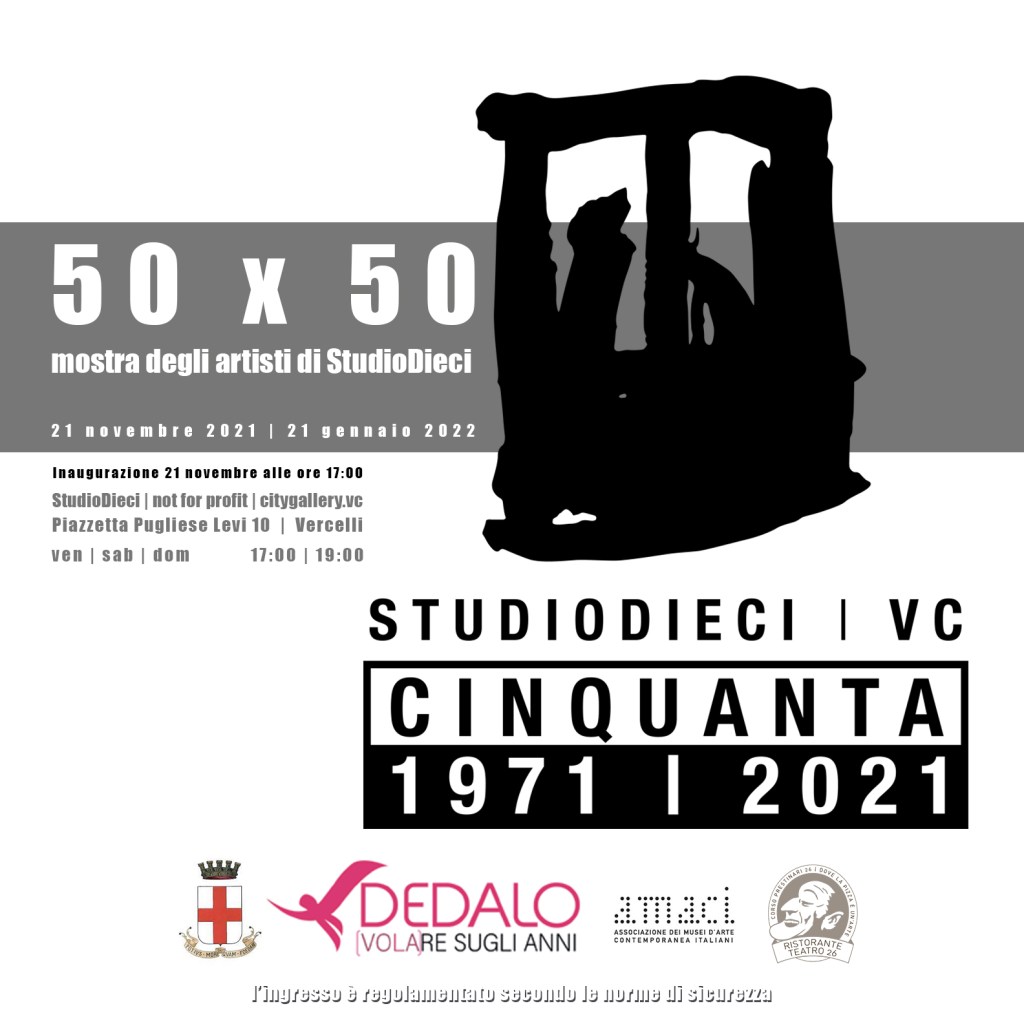 50×50 nasce dall’idea di celebrare un logo ormai iconico e segno di una rotta intrapresa nel 1971. Diverse sono le persone che si sono prese cura di StudioDieci, una in particolare le è rimasta fedele da una quarantina d’anni: Carla Crosio. Senza la sua energia, bisogna ammetterlo, questo sogno si sarebbe spento e, al posto della Storia, ci sarebbe soltanto un ricordo. Ecco che, al suo richiamo, molti compagni di viaggio hanno scelto di rispondere a questo invito. 50×50 è una festa, ma sopratutto, l’occasione per ritrovarsi. Non per auto celebrarsi, ma per l’opportunità di tessere nuove “trame dell’anima” e dell’arte, sognare fino alla “fine della nazione” (end in nation) e depositare nuovi spunti su delle “nuvole eterotopiche” che porteranno a nuovi progetti. A nuove condivisioni.